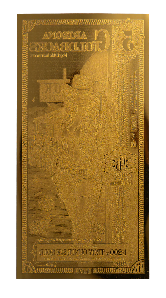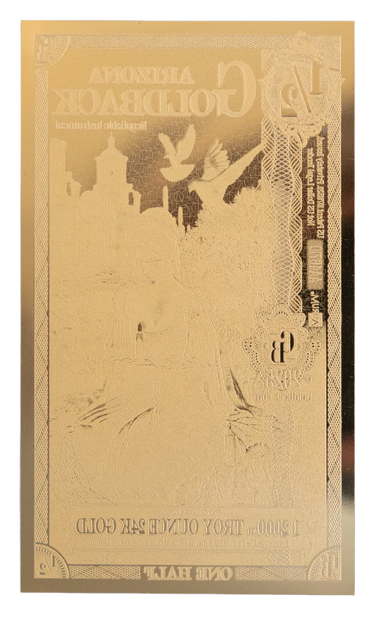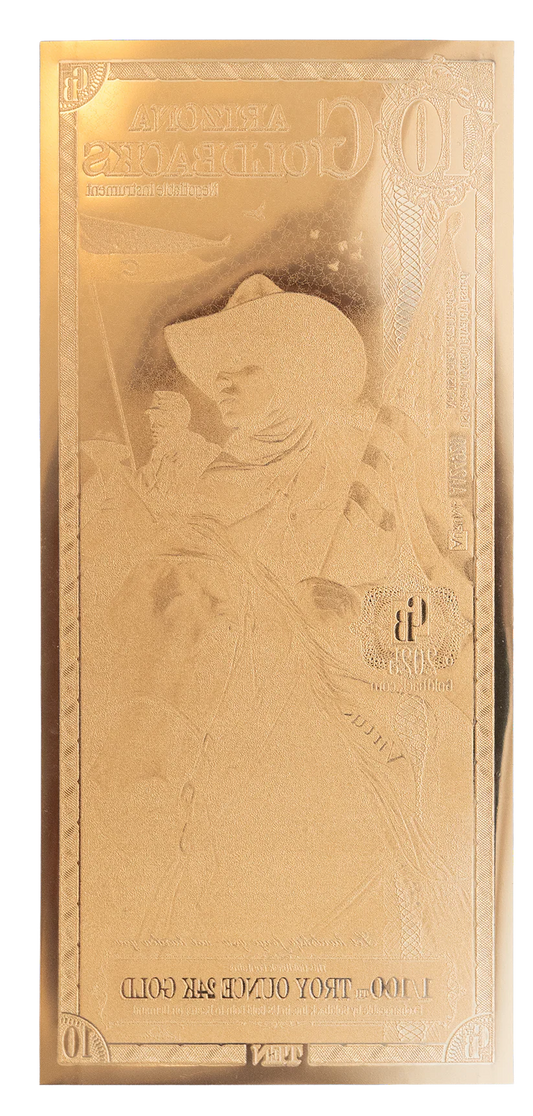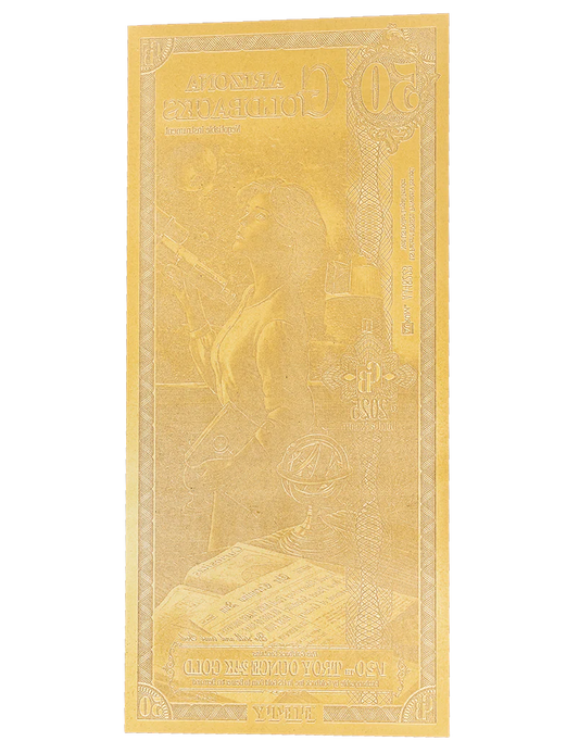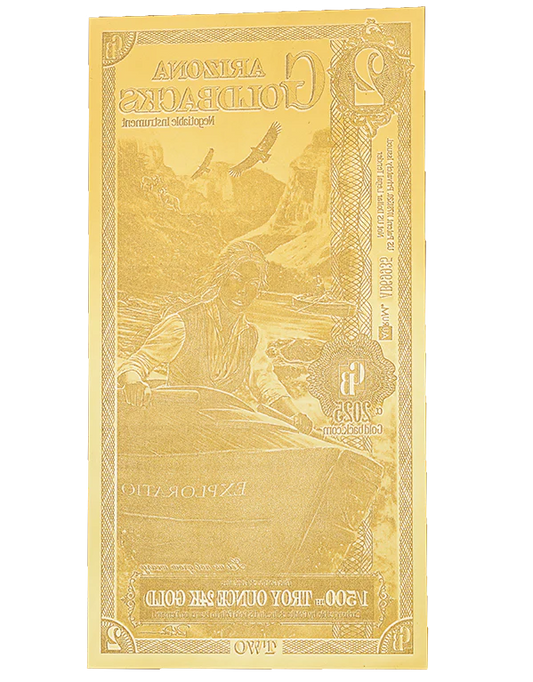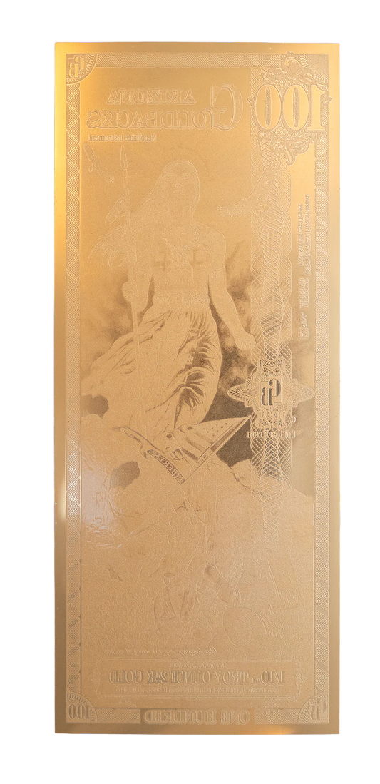 The Arizona Goldback series embodies the bold spirit and striking heritage of the Grand Canyon State through beautifully crafted gold notes that honor its values, history, and cultural richness. Each note showcases evocative allegorical imagery inspired by Arizona’s deep Native American roots, rugged desert landscapes, and enduring frontier legacy. With scenes that reflect the state’s defining virtues—such as resilience, independence, and reverence for the land—interwoven with symbols of its natural grandeur and strength, this series is more than a way to hold gold; it is a celebration of Arizona’s story, uniting art, identity, and value into a distinctive and meaningful form of currency.