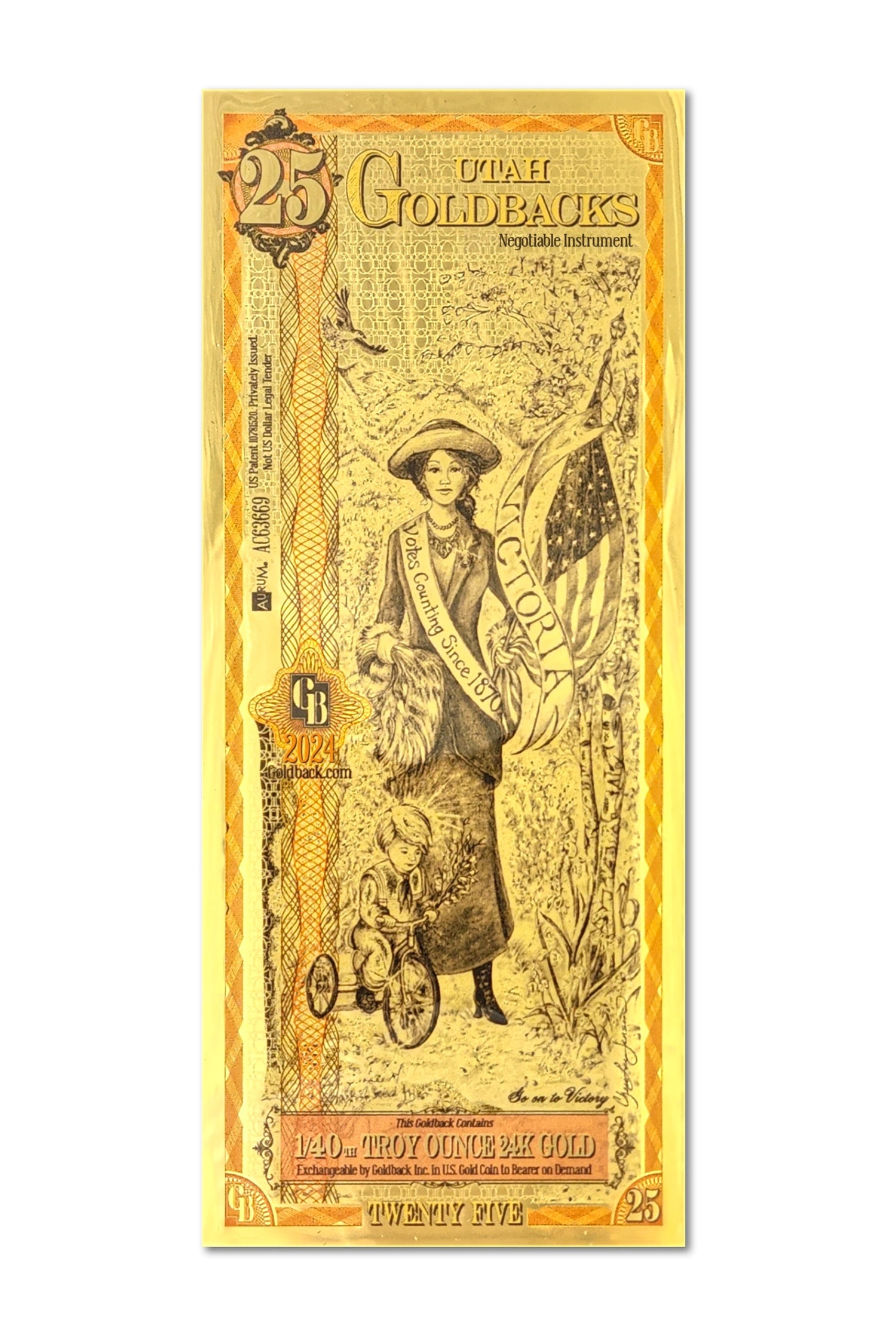 Twenty-five Goldbacks. 1/40 of a troy ounce of .9999 fine 24k gold....