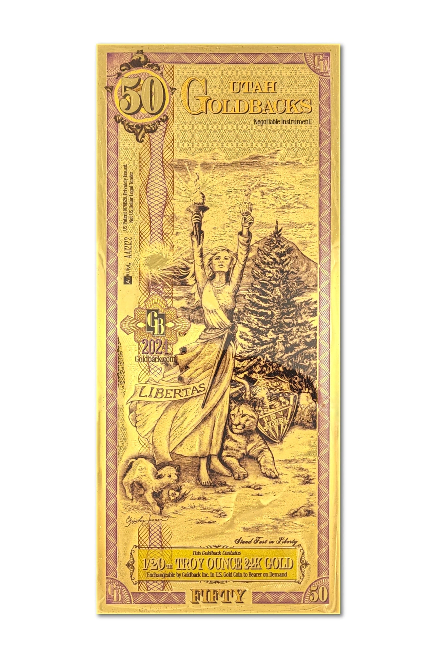 Fifty Goldbacks. 1/20 of a troy ounce of .9999 fine 24k gold,...