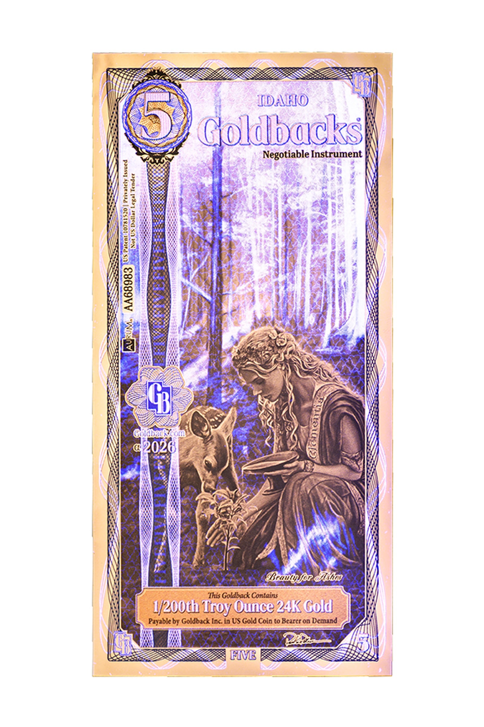 5 Idaho Goldback Gold Note — 1/200 troy oz · 99.9% pure 24k gold