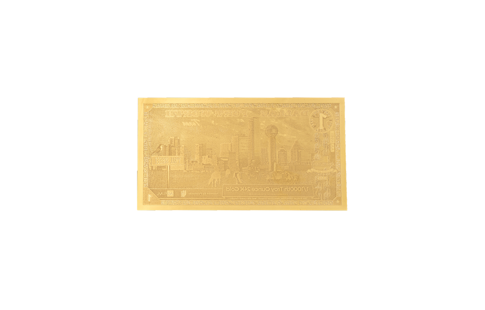 The Goldback Dallas One is a striking blend of artistry, innovation, and real value. Crafted with 1/1000th troy ounce of .999 fine gold, this beautifully designed note represents the strength, ambition, and economic influence of Dallas—one of America’s most powerful cities.