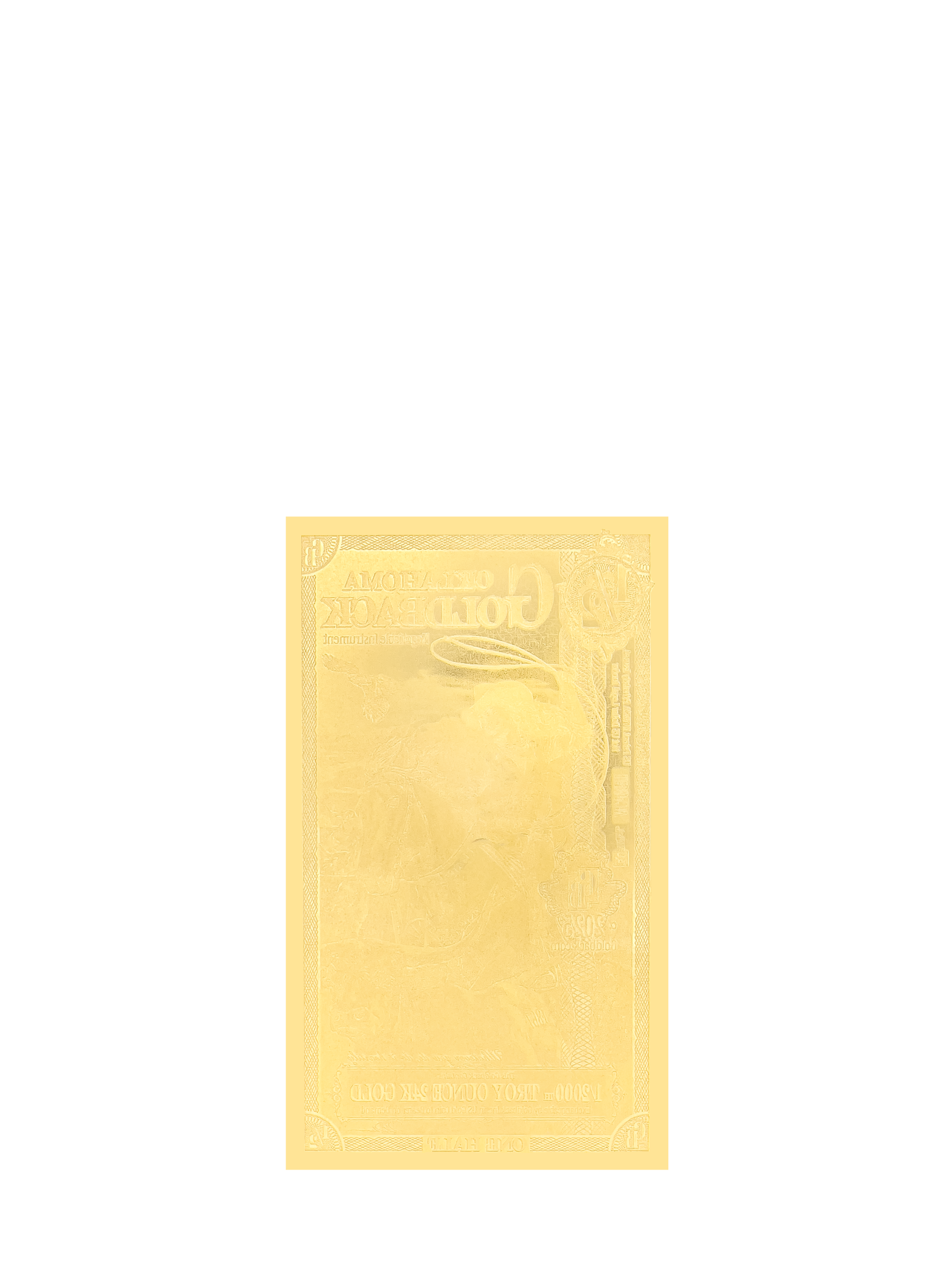 Experience the Oklahoma Goldback, a remarkable fusion of precious metal, history, and artistic expression. Containing 1/2000th of a troy ounce of 24-karat gold, this note is part of the world’s first voluntary, spendable gold currency—perfect for collectors, investors, or those seeking a practical form of fractional gold.